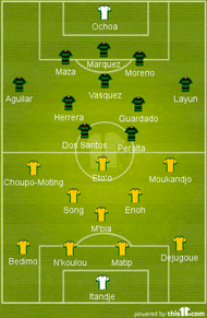 Cameroon (4-3-3): Itandje; Djeugoue, Matip, Nkoulou, Bedimo; Enoh, Song, M'bia; Moukandjo, Eto'o, Choupo-Moting