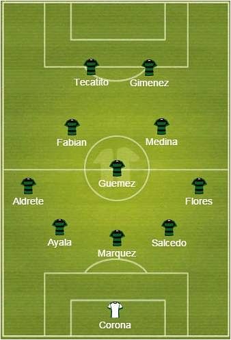 Midfielders: Mario Osuna (Queretaro), Juan Carlos Medina (Atlas), Javier Güemez (Tijuana), Jesús Corona (FC Twente), Javier Aquino (Rayo Vallecano), Luis Montes (Leon), Marco Fabián (Chivas)