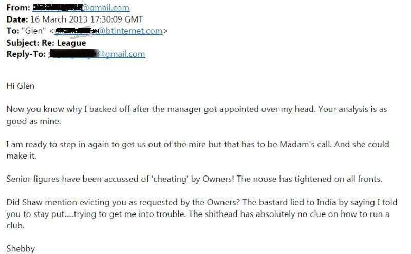 In a number of e-mail interactions between Glen Mullan and Shebby Singh during this period – copies of which were also released publicly by Mullan – Shebby seemed to have admitted many irregular happenings at the club.
