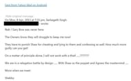 “That is what I meant by irregularities which I said in the press. PA got his mate DS on a plane and flew to India uninvited to beg for mercy. DS confessed to the crime of lying and cheating. She is resigning because she cannot work with DS and PA doing things behind the Owners backs.