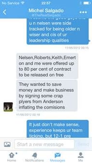 “On a matter of principle alone, I will not work with a thief ......??????? We are in a relegation battle by design ...... With Shaw as the puppet and Agnew the mastermind ..... More when we meet.”