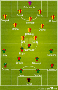 East Bengal (4-4-2): Subhashish Roy Chowdhury; Deepak Mondal, Milan Susak, Arnab Mondal, Robert Lalthlamuana; Mama, Harmanjot Singh Khabra, Mehtab Hossain, Lalrindika Ralte; Ranti Martins, Dudu Omagbemi