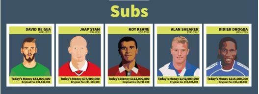 TotallyMoney used data from Transfermarkt and XE Currency Converter to calculate the what they call Todays Money, that is the transfer fee accounted for Football Inflation.