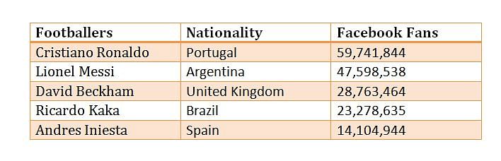Here is a list of the most popular football players in the world based on the number of fans they have on Facebook.