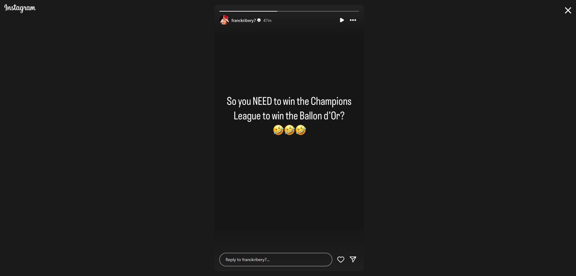 After Cristiano Ronaldo recently suggested that the Ballon d’Or award should go to a Champions League winner, Franck Ribery seemingly pointed out the irony in him missing out on the award despite winning the trophy in 2013. The Frenchman posted on his Instagram story: