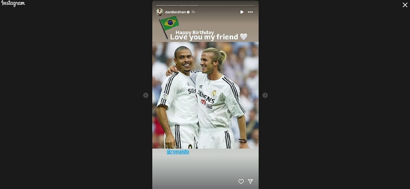David Beckham showered love on his former Real Madrid teammate Ronaldo Nazario on his birthday. The Englishman sent a heartfelt message to the Brazil legend via social media platform Instagram.