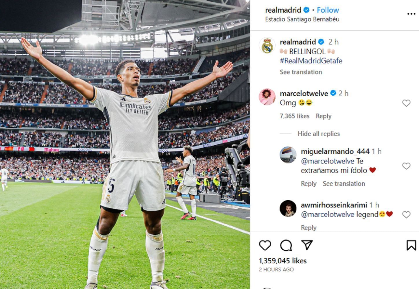 An impressive last-minute goal from Jude Bellingham kept Real Madrid's perfect start to their La Liga campaign intact, as club legend Marcelo reacted on social media.