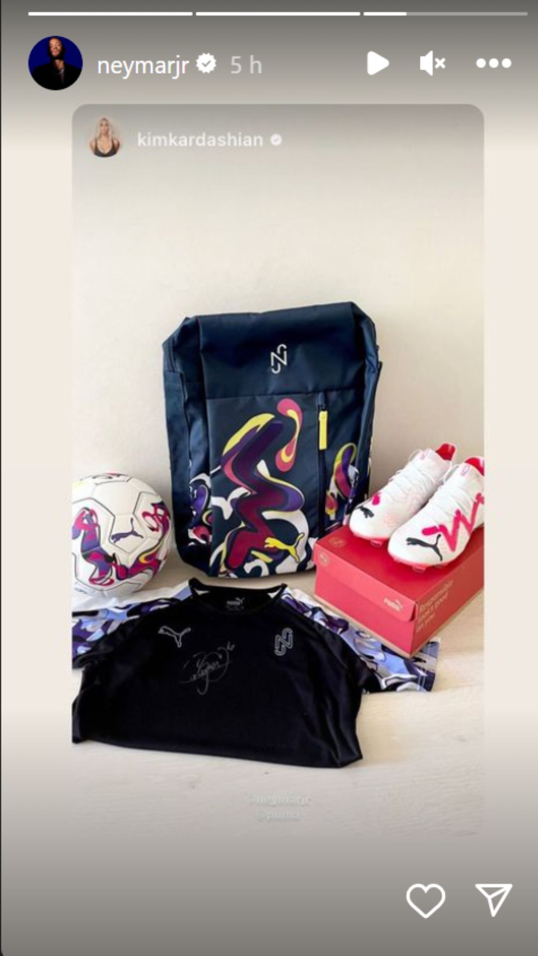 Neymar reposted Kim Kardashian's Instagram story on social media as the reality TV star posted an image of the Brazilian's apparel.