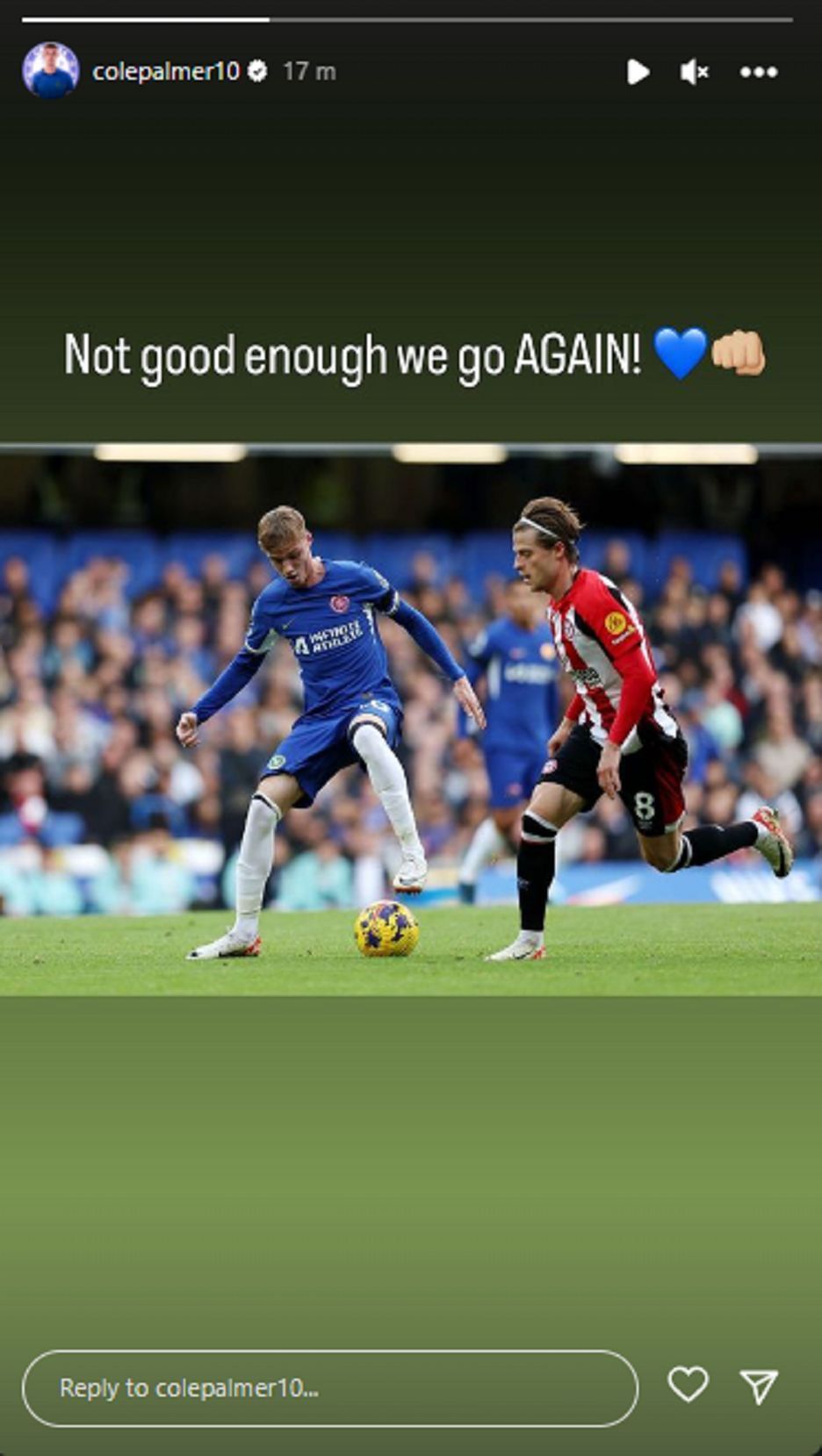 Chelsea's recently soaring trajectory took a nosedive, culminating in a 2-0 Premier League defeat to Brentford on Saturday (October 28). Following the match, young talent Cole Palmer took to his Instagram stories to make an honest assessment of the game.