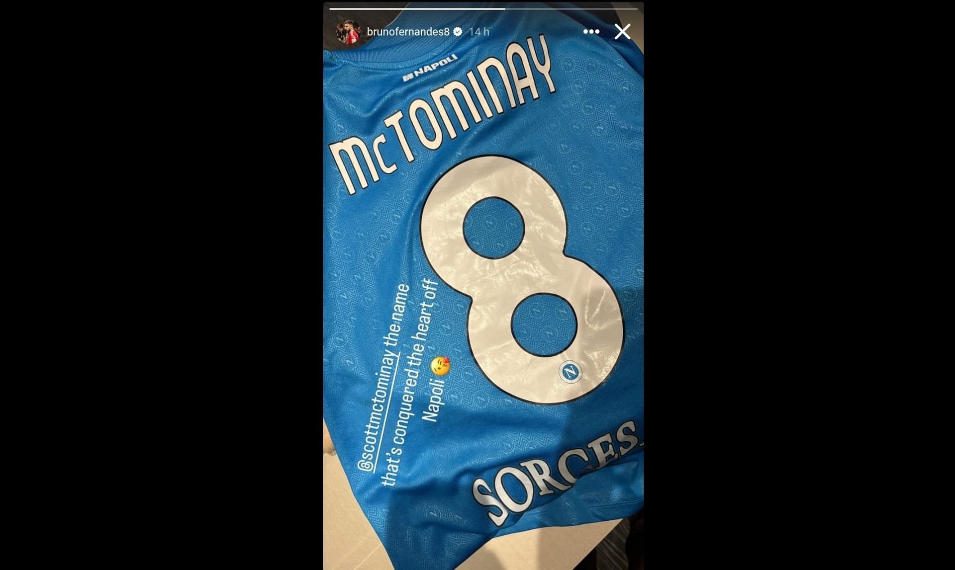 After the match, McTominay presented his Napoli shirt to Bruno Fernandes. The Portugal international confirmed the news on his Instagram account with the caption: