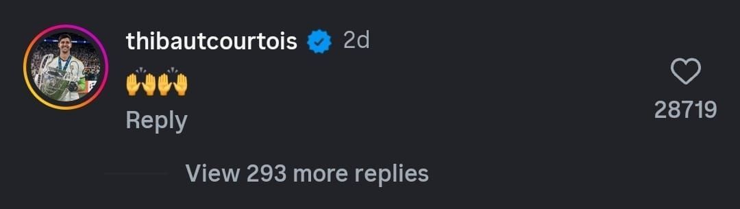 After the match, Manchester United posted a video honoring Lammens' memorable debut on their Instagram account. Courtois commented with two raising hands emojis to show his happiness for his Belgian compatriot.