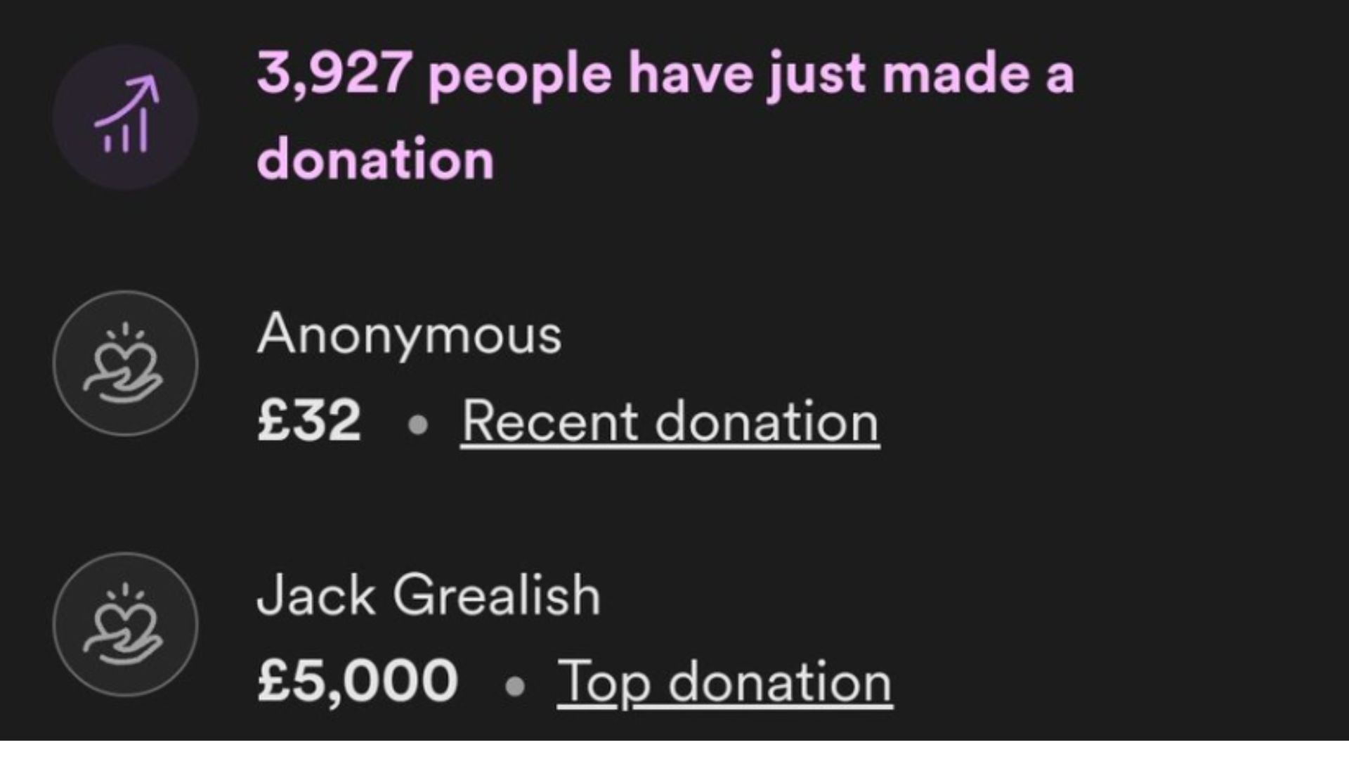 A screenshot has since emerged on social media, showing that Grealish donated a sizable sum to help the young fan.