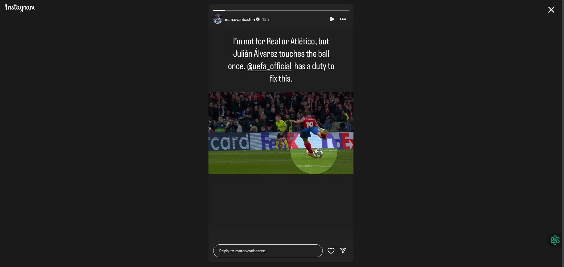 Van Basten is the latest to share his thoughts on the incident. The Dutchman took to his Instagram story and wrote: