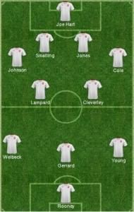 Gerrard’s place is certain. So, if he plays in the hole behind the striker and assuming Young starts on the left, Ox could start on the right which is exactly the formation England fielded in the 2012 Euros. Else, Danny Welbeck could start on the left in place of Ox-Chamberlain.