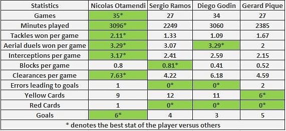Agreed that Ramos played fewer games, Ramos’ average per game defensive actions are only 0.01 better in terms of blocks. All the other figures are way better for Otamendi. And not only Ramos, his stats are way better than Liga’s other notable defenders like Gerard Pique and Diego Godin.