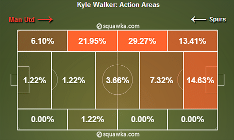 With United chasing the game, Evra was expected to get forward as much as possible- regardless of the Spurs threat and while it was far from an assured performance, the player David Moyes described as a ‘leader’ didn’t shirk his attacking duties as the heat map shows.