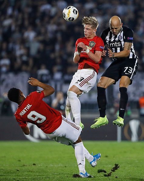 Partizan Belgrade's physical striker Umar Sadiq was a thorn in the flesh of the Manchester United defenders for the entirety of the game. The entire offense of the host team ran through Sadiq; the Nigerian functioned as a target man, holding up the ball and linking well with Zoran Tosic and Takuma Asano.