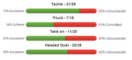 Although four years Clichy’s elder, over in the red corner, Patrice Evra is ahead of his rival in nearly every category. He has made 10 appearances this season and is away ahead of Clichy on the Squawka performance index with a score of 241 points.