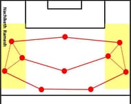 This forces the attacking teams to circulate the ball from one wing to another, in “U” shape, without any penetration. But consider the situation when the ball is in the center – the wings are generally unoccupied by the defending team.