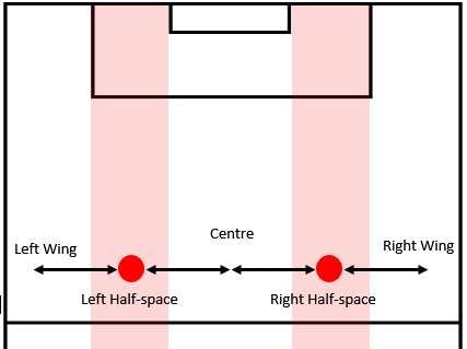 In the center, if a player positions in the half-spaces, that is the narrow vertical strip between the center and the wings, then access to both the center and the wings can be easily achieved.