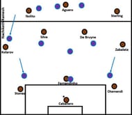We again saw the use, albeit limited, of wingbacks in the central midfield area and the use of Silva and De Bruyne at #10s. Caballero committed a few errors under pressure but showed signs improvement. It might not be enough as he might soon be replaced by Claudio Bravo of Barcelona.