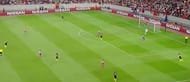Noticing the man-orientation of the home team players while pressing high, Manchester City started providing triple width – three players of different lines of formation on the wings or the wide regions – usually the ball near side central defender (in the image and GIF – Stones), near side wingback (Kolarov), and near side winger (Nolito, in the image and GIF).