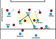 Sterling was the under loaded side player and Nolito mainly played with the ball close to him. This was one of the main reasons why we saw Zabaleta in the center (ball-oriented) and Clichy in wider positions than the Argentine.