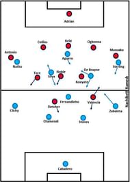 Also, the #8 far from the ball for City was a bit ball-oriented. This maybe because of two reasons. One, to support Aguero in laying off vertical balls. Two, to overload the ball near side.