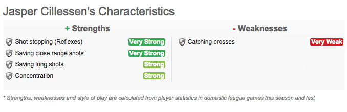 Ultimately what's elevated him are the attributes recognised as 'strengths' by WhoScored – shot stopping, concentration, and saving shots from close (as he demonstrated against Legia Warszawa in the Europa League last week) or long range – but as we know reaching the summit isn't the most difficult part; it's staying there.