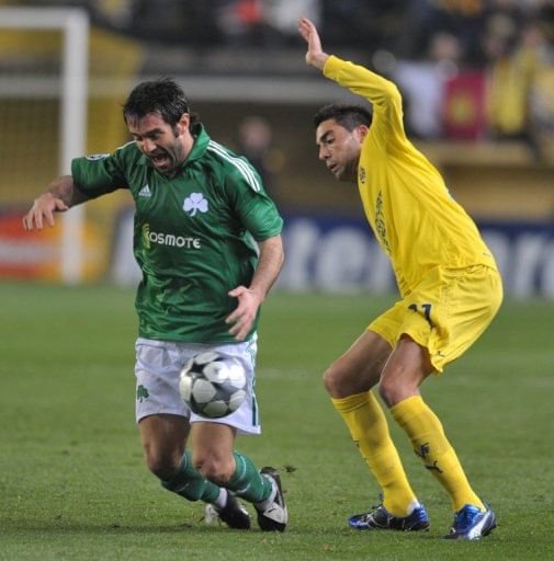 Giorgios Karagounis (left) plays for Panathinaikos in a Champions League match against Villarreal. The Greece Euro 2012 captain says: “We want to give joy to the Greeks. We will do our best, without stress and pressure, and hopefully bring back beautiful memories.”
