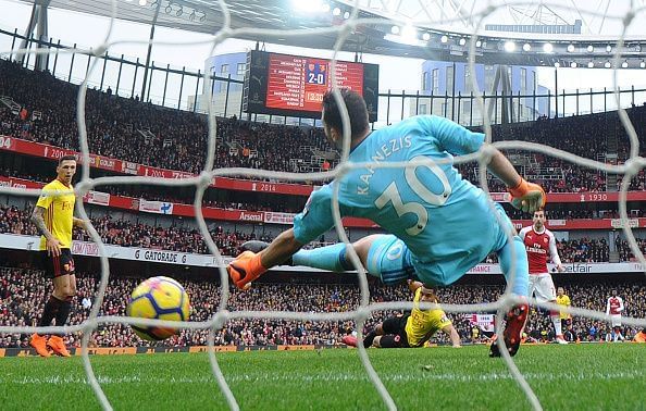 The Greek goalkeeper who's keeping out Watford regular Huerelho Gomes shone at the Emirates despite letting in three goals.