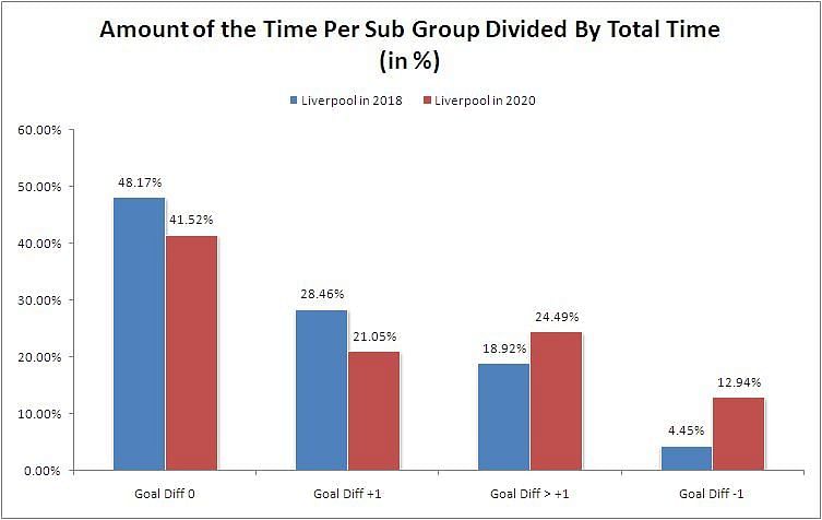 In terms of percentages, last season Liverpool FC were down by 1 goal 4.45% of the time. This season, that number has almost tripled to 12.94%.