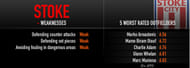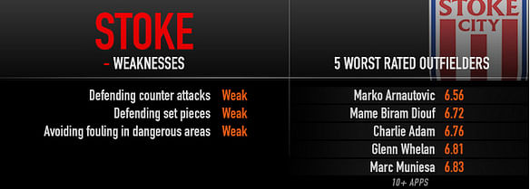 The likes of Bojan and, prior to injury, Victor Moses have added a new dimension to Stoke's attack but their defensive solidity has perhaps been compromised a little. Hughes' side have conceded the most goals from set pieces this season and have a weakness from WhoScored.com in turn. Suggesting that they may need to add height to their backline may seem laughable but a higher quality partner for captain Shawcross may be advisable.