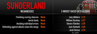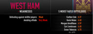 Adding numbers just to cover for temporary absences, however, is ill-advised so Allardyce will likely keep the faith in what he has at his disposal, though there is one position they may need addressing in his side. To say that Carl Jenkinson has been a weak link would be an overstatement but the right-back has the lowest rating (6.68) of any teammate to start more than 10 games this season and hasn't made quite the impact that Aaron Cresswell has on the opposite flank.