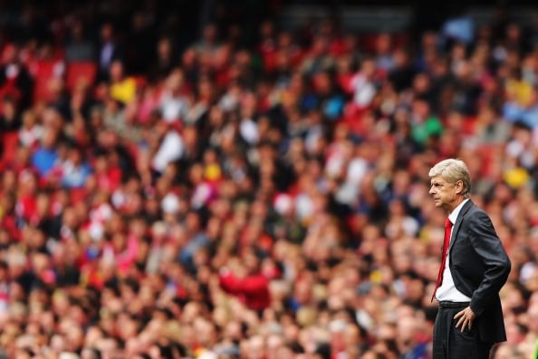 Arsene Wenger manager of Arsenal looks on during the Barclays Premier League match between Arsenal and Stoke City at Emirates Stadium on September 22, 2013 in London, England.