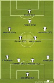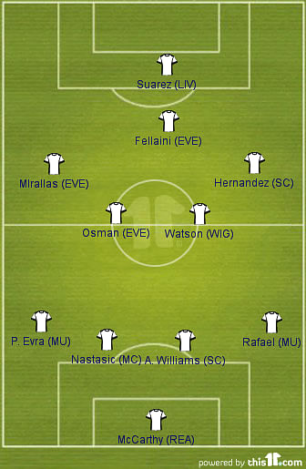 Rafael da Silva and Patrice Evra feature in the list on the back of dominating both the flanks in the big game against Arsenal at Old Trafford. In the past two weeks of the Premier League, Sir Alex’s emphasis on the wing has allowed United to build attacks with alternate overlapping runs from both his full backs. While Rafael was crucial in constructing the first goal with his cross that led to an error from Vermaelen, Evra was rewarded with a goal for his most consistent 90 minutes this season.