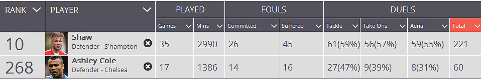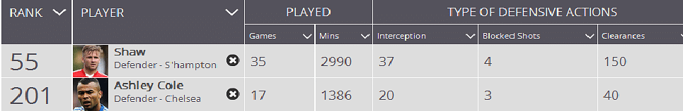 Looking at the comparison, Shaw definitely has an upper hand over Cole. He looked more stable at the back, providing way too many clearances than Cole and was more successful in dealing with aerial threats with a success rate of 55%. Not only that, he also created many chances up the field. Most importantly, committed no defensive errors given the fact he played 35 games, almost twice more than Cole. With a mature performance this season, no doubt Hodgson preferred Luke over Cole in his final list.