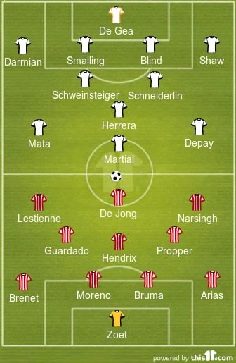 Manchester United (4-2-3-1): De Gea, Darmian, Smalling, Blind, Shaw, Schweinsteiger, Schneiderlin, Mata, Herrera, Depay, Martial