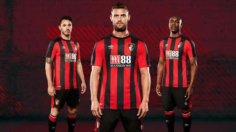 Crystal Palace have kept the vibrant blue and red stripes for their home kit with a gold trim around the neck and on the edge of the sleeves. However, their kit is yet another case of a hideous sponsor name messing with the allure of a fine design.