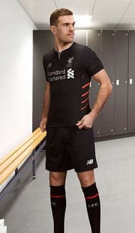 Liverpool’s away kit looks really good this time around. The black strips with red and silver trimming on the front has been inspired by the programme design from their first European Cup victory in 1977 and pays tribute to the team that brought glory to the club.
