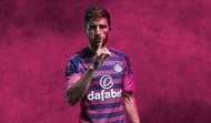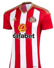 The only reason Sunderland’s kit features one spot above Stoke’s is because of their away kit. Sunderland really broke out of their stodgy old mould and went for a striking set of away strips. The Black Cats have a bold pink and purple away jersey – the shirt has pink and purple horizontal bands that have alternate coloured diagonal stripes on them.