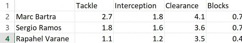 Bartra averaged a massive 2.4 tackles per game, 2 interceptions per game and almost 6 clearances per game. Even Raphael Varane had averaged only 1 tackle and 1 interception per game.