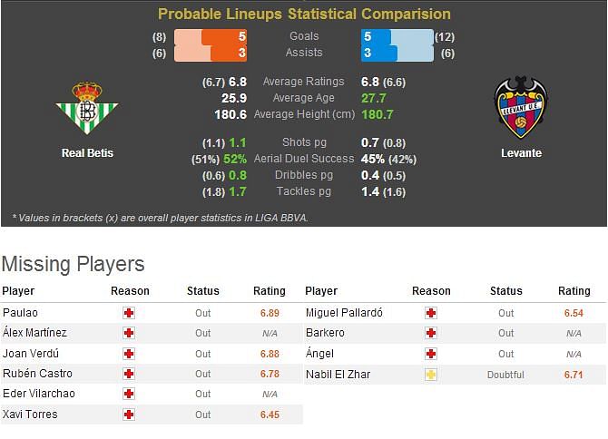 - Levante have a few injury concerns of their own and though not fully recovered Nabil Zhar could play a part.