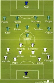 Real Madrid (4-4-2): Navas; Carvajal, Ramos, Pepe, Marcelo, Kroos, Modric, Isco, James; Ronaldo, Benzema