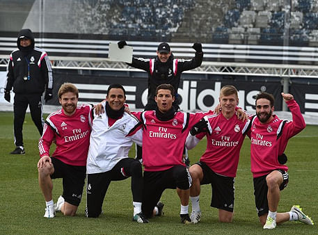 This is evident in the training session, where Ronaldo is seen continuously demanding the ball, celebrating like a schoolboy whenever a goal is scored, and after netting the winner at the end of the session, beckoning the photographer to take a team photo of his ‘winning team’ of Toni Kroos, Dani Carvajal, Asier Illarramendi and goalkeeper Keylor Navas – a photograph Ronaldo then would ask for a copy of via the Real media officer.