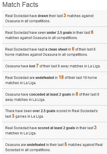 The last two meetings at the Anoeta between these two side saw no goals scored, so it could perhaps be a low-scoring affair. Osasuna, in particular, seem to really struggle to find the net in this fixture, having scored just once in the last four.