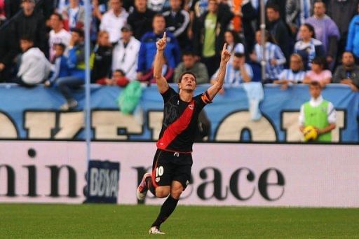 Rayo Vallecano’s forward Piti celebrates after scoring during their Spanish league football match at the Rosaleda stadium in Malaga. Malaga crashed 2-1 at home against an attack-minded Rayo Vallecano.