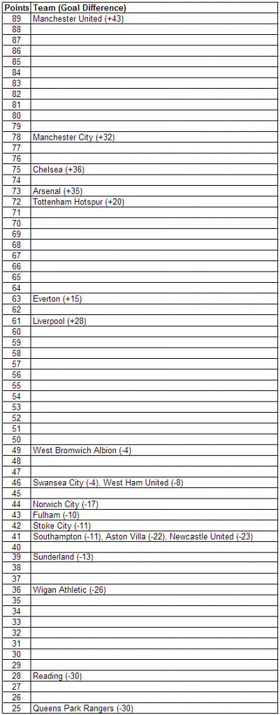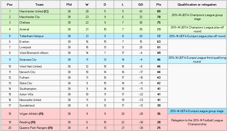 This is the English Premier League Table for the 2012-2013 season.