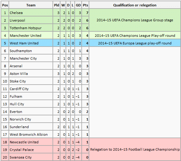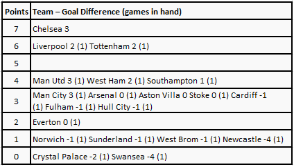 The points system is simple, which houses the corresponding team alongside it, with the goal difference. The number in the bracket is the number of games a team has to play to match the team with the most number of games played.