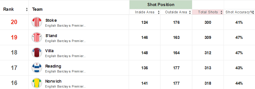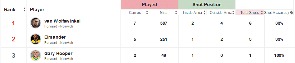 The Canaries also find themselves in the bottom five for chances created, showing their complete lack of ability in the opposition half. Nathan Redmond has been the brightest spark in the Norwich side and tops their performance score charts as well as contributing 10 shots in his 382 minutes on the pitch.
